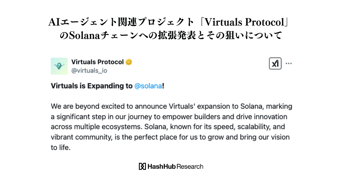 Baseチェーン上のAIエージェント関連プロジェクト「Virtuals Protocol」のSolanaチェーンへの拡張発表とその狙いについて