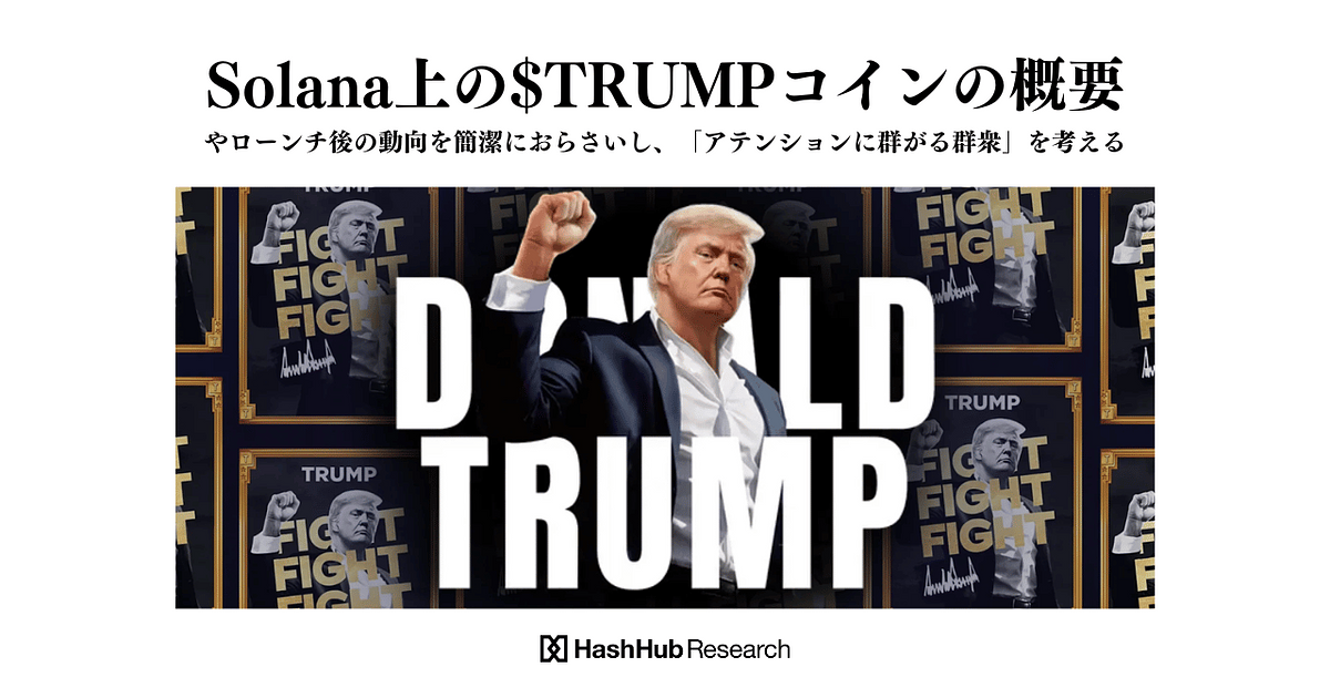 そこで本レポートでは、ローンチから約1ヶ月が経過したこのタイミングで、$TRUMPコインの概要やその後の動向を整理し、クリプト領域でしばしば混同されがちな「ソーシャル」と「コミュニティ」の違い、さらには「アテンションに群がる群衆」という新たな視点から、ミームコインがもつ本質的な課題について考察していきます。