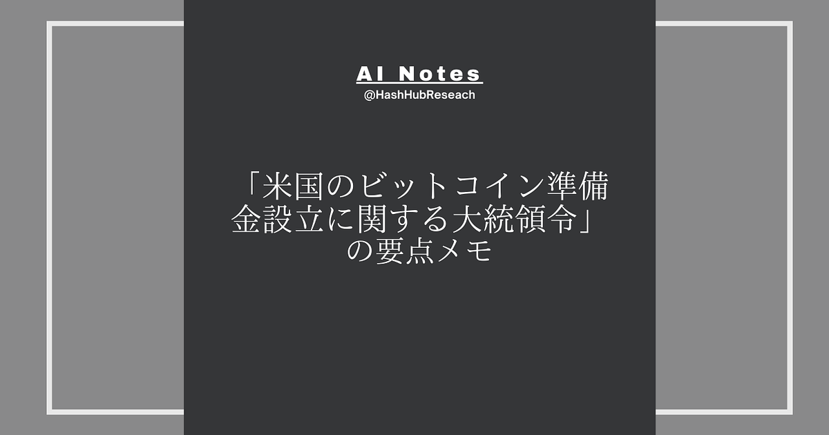 「米国のビットコイン準備金設立に関する大統領令」 の要点メモ