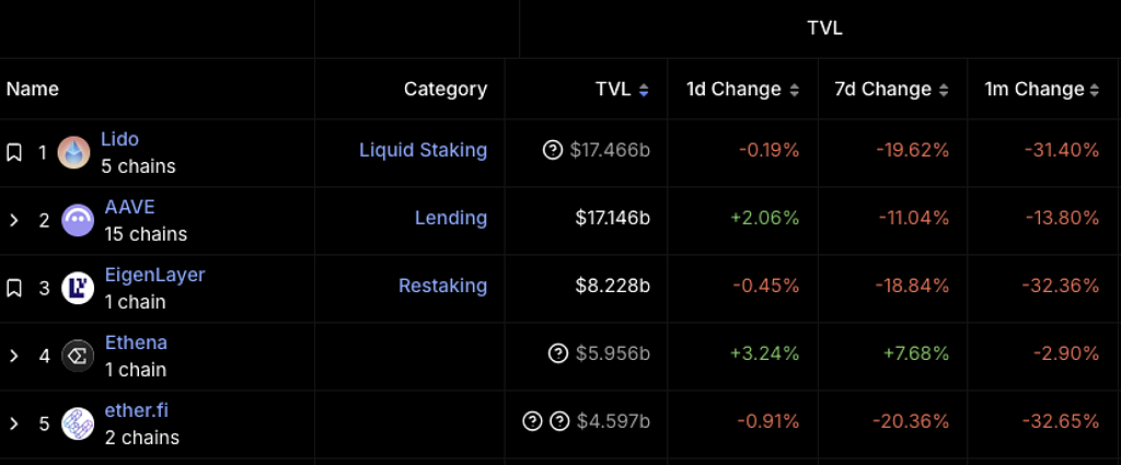 https://defillama.com/(2025/03/13時点のTVLランキングでLidoに次ぐ2位)