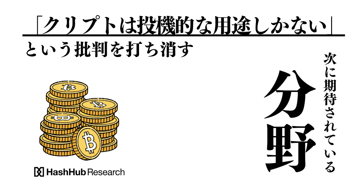 - 「クリプトは投機的な用途しかない」という批判を打ち消す次に期待されている分野
