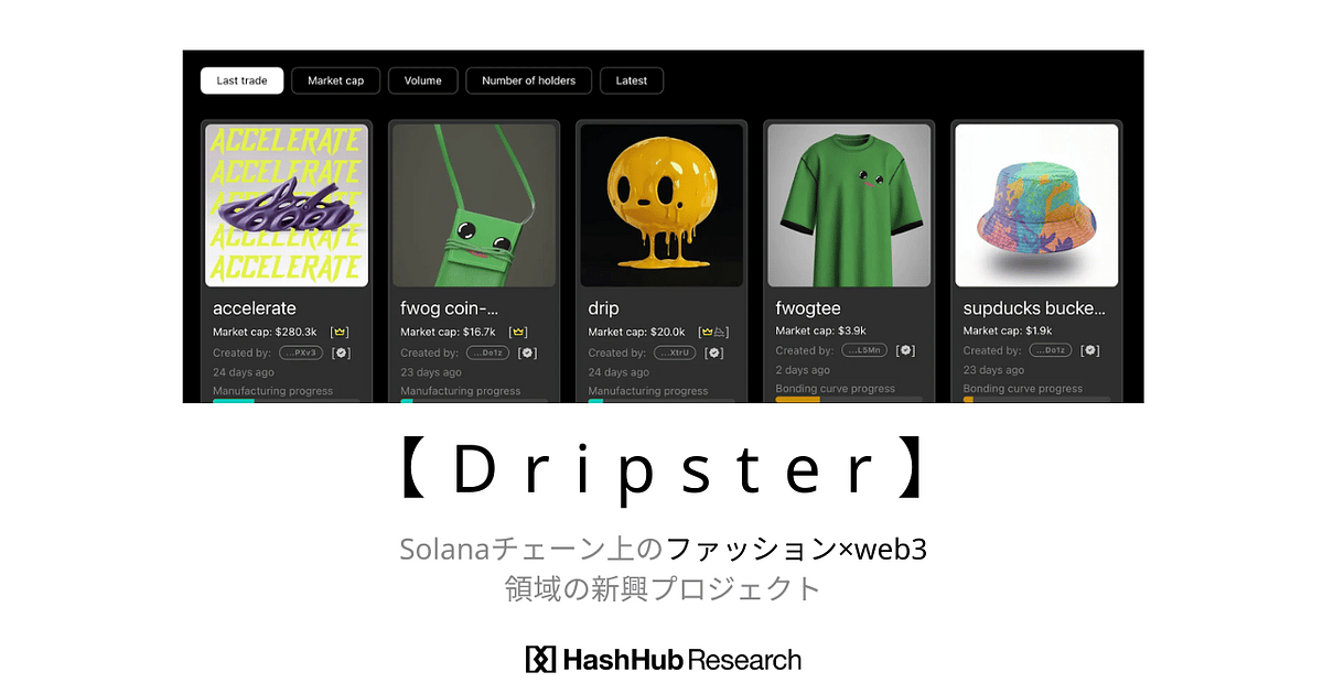 Solanaは高速かつ低コストで、トランザクション処理能力に優れているという特性を持ち合わせていますが、DripsterがSolanaチェーンを選んだことによって、高い取引量やリアルタイムでの価格変動を支えるインフラを確保できるわけです。本レポートでは、まさにそのSolana上で注目を集め始めている次世代型ファッションプロジェクトにフォーカスしてみたいと思います。