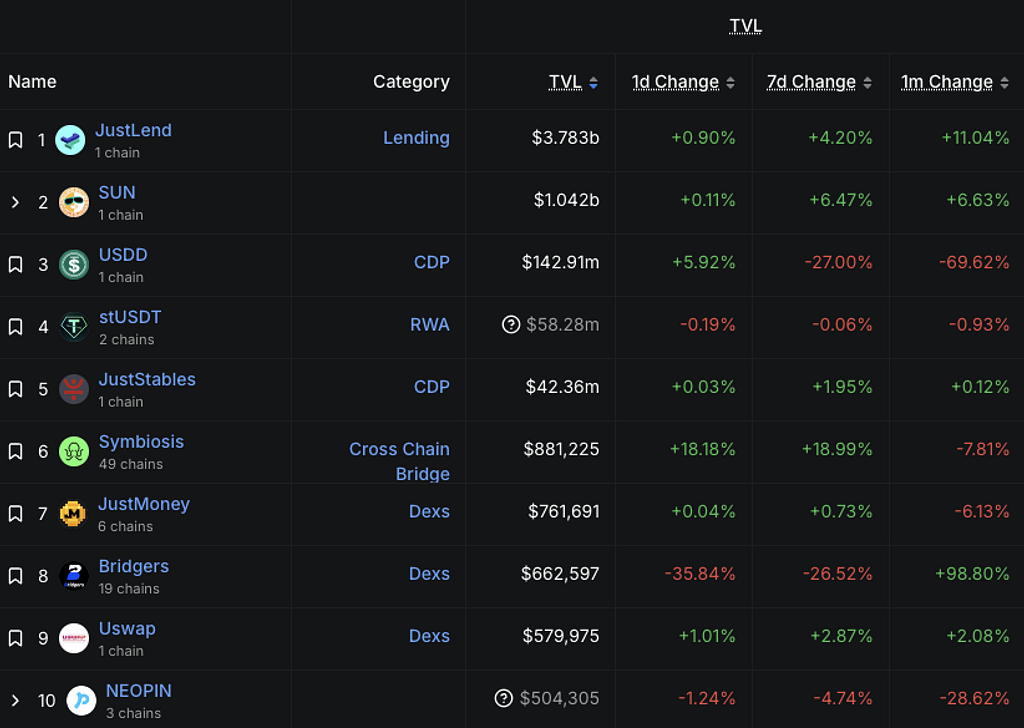代表的なDeFiアプリには貸付プロトコルのJustLendや分散型取引所SunSwap等があり、総TVL(ロック額)で数十億ドル規模の資金を集めています。