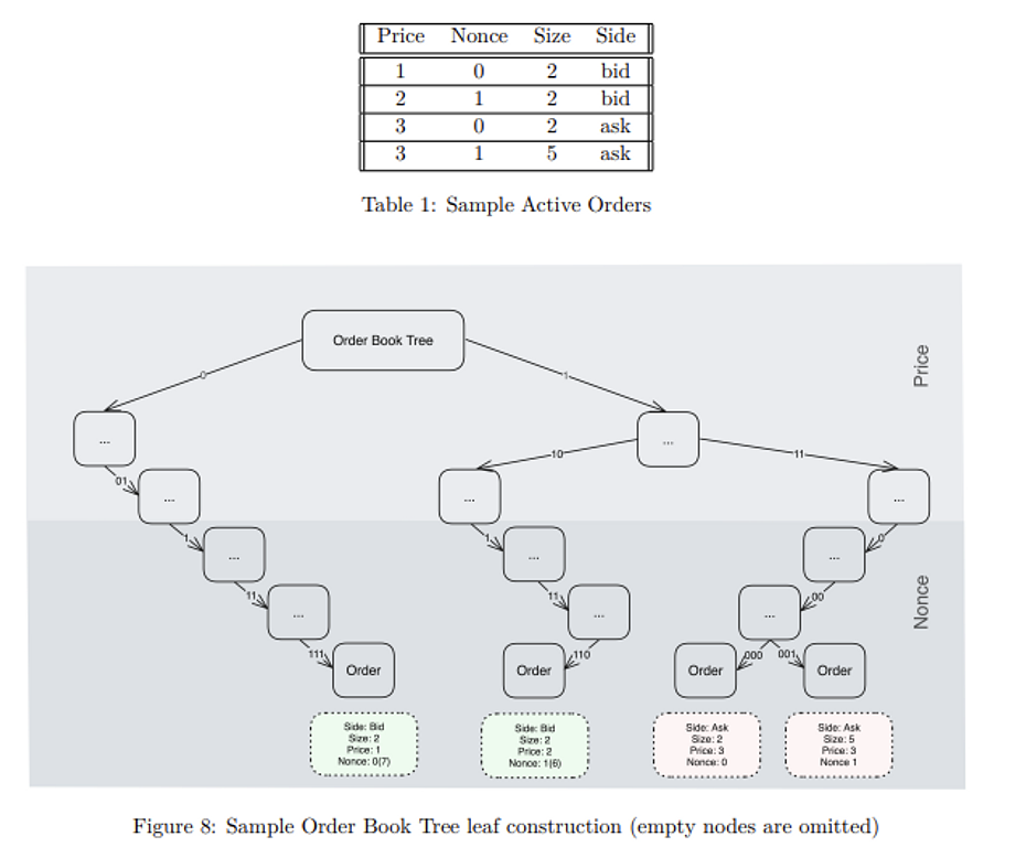 特に注目すべきは、オーダーブックの管理方法です。ホワイトペーパーによれば、オーダーブックは高さ72にも及ぶ巨大な「オーダーブックツリー(Order Book Tree)」として実装されています。このツリー構造において、各注文は価格とナンス(注文の一意性を保証するための数値)に基づいて特定のパス(経路)に格納されます。
