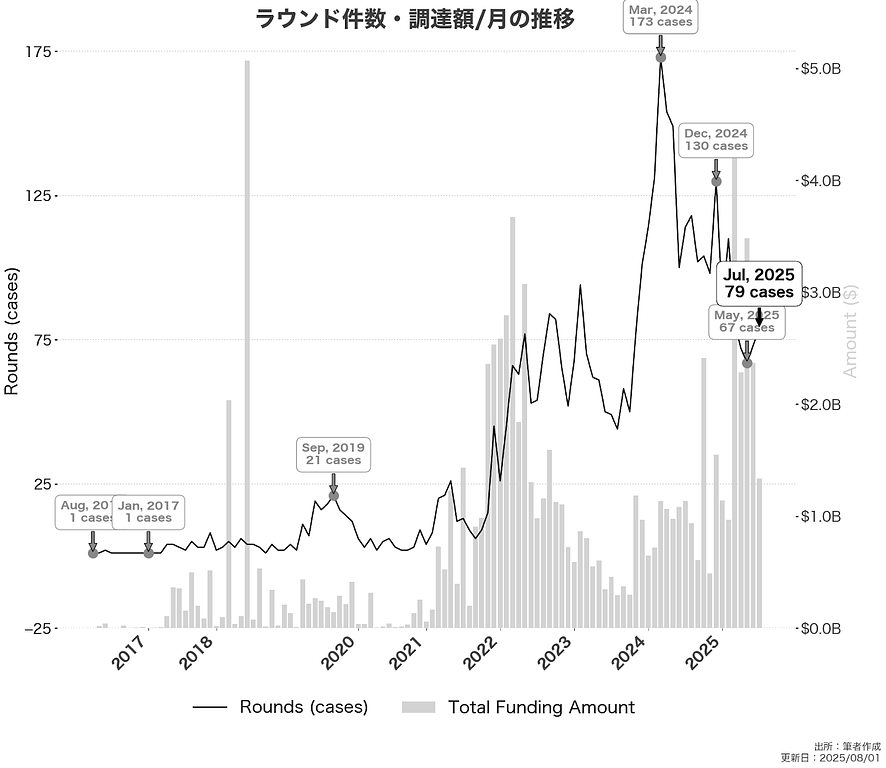暗号資産/ブロックチェーン業界の資金調達トレンド分析 - 2025年7月レポート