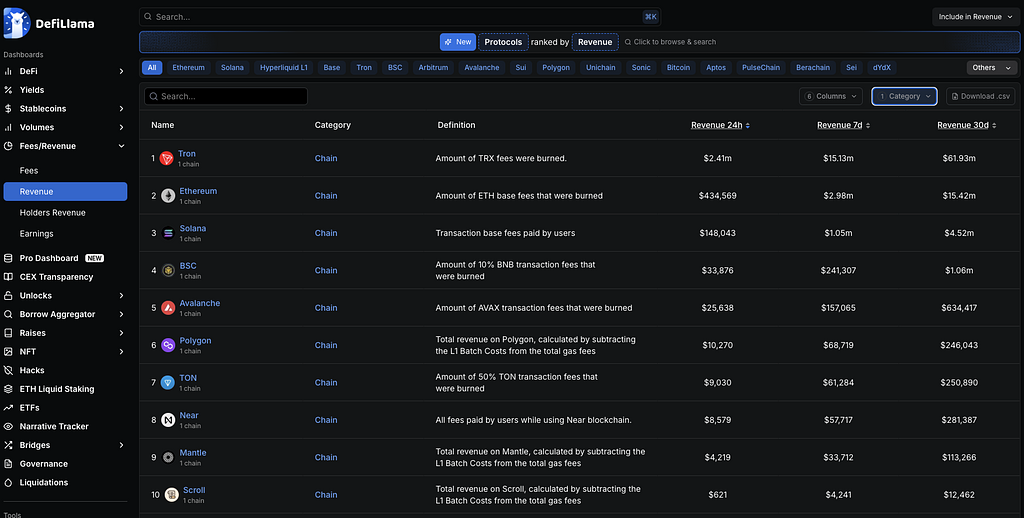 https://defillama.com/revenue?category=Chain
