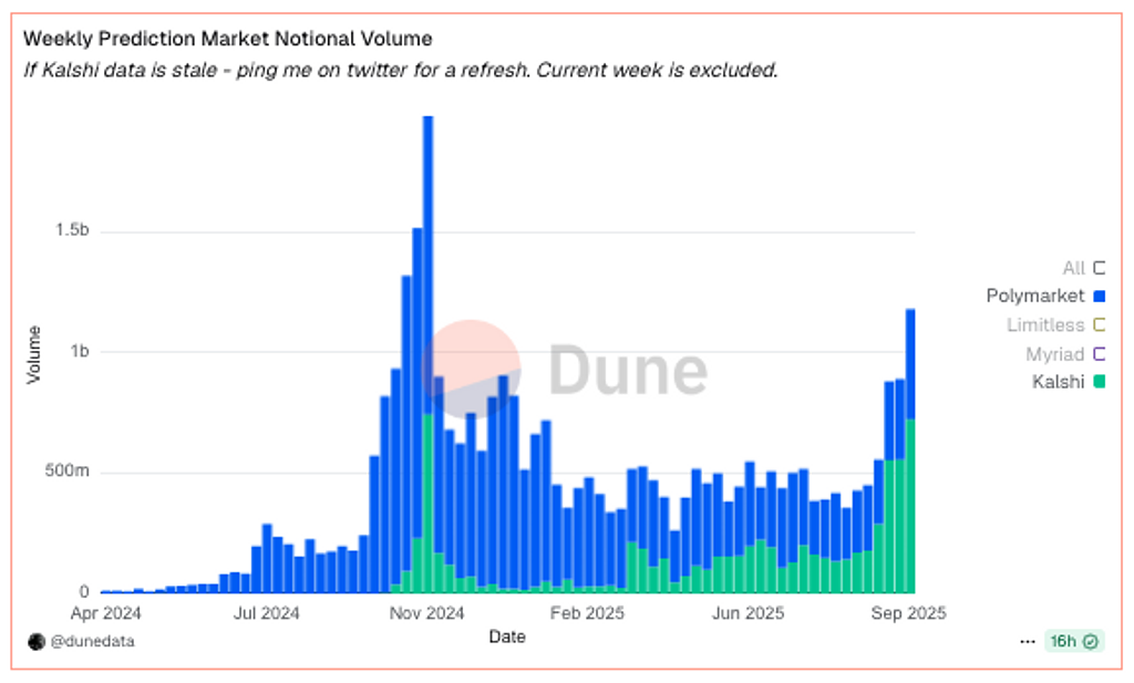 先日、米国の予測市場プラットフォームである「Kalshi」が、SolanaおよびBaseとの提携を発表し、ビルダーやトレーダー、コンテンツ制作者を支援する新たなエコシステムハブ「KalshiEco Hub」を立ち上げ、話題となりました。Kalshiは、この取り組みによって従来の金融とオンチェーン技術の架け橋となることで予測市場分野での革新を促進する狙いがあると見られます。実際に、最新の動向ではKalshiの取引量が急増しており、競合のPolymarketに迫る水準に達しつつあります。