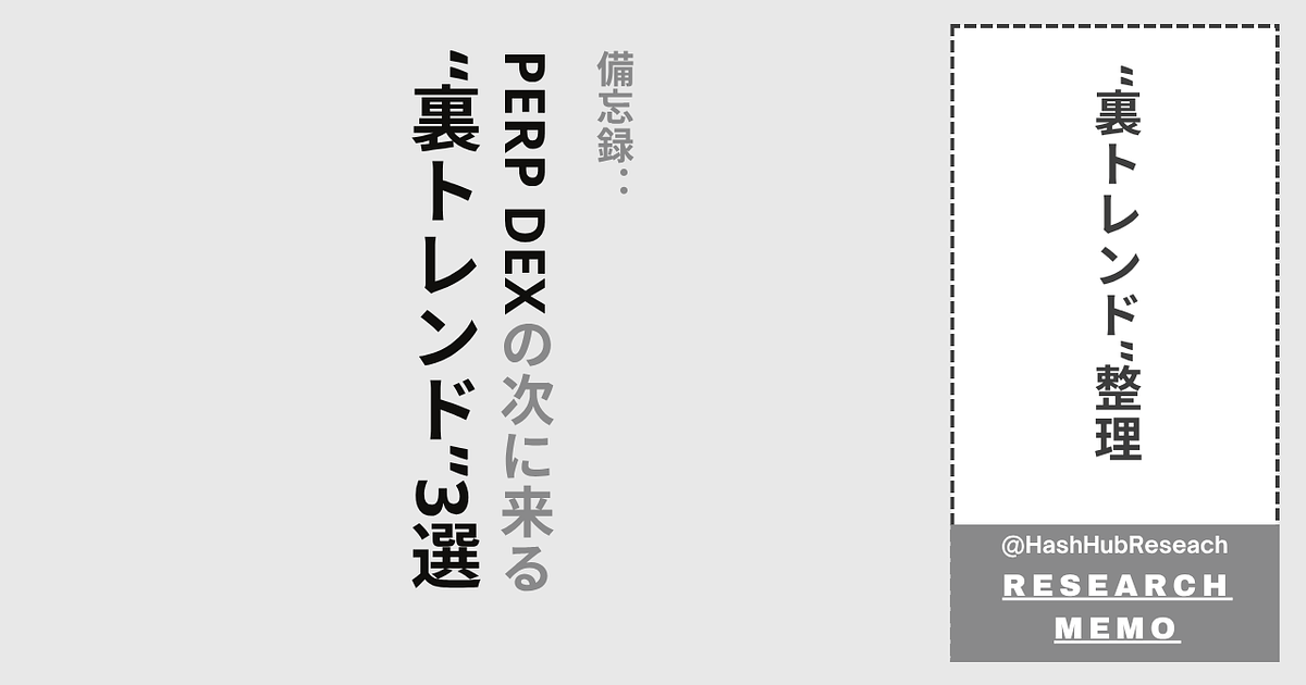 PERP DEX[無期限先物]については、弊社レポート「投資テーマとしての無期限先物取引所」で既に取り上げた通り、直近でもっとも注目されるテーマです。ではその一方で、表舞台の熱狂に隠れながら存在感を増している“裏トレンド”は何でしょうか。