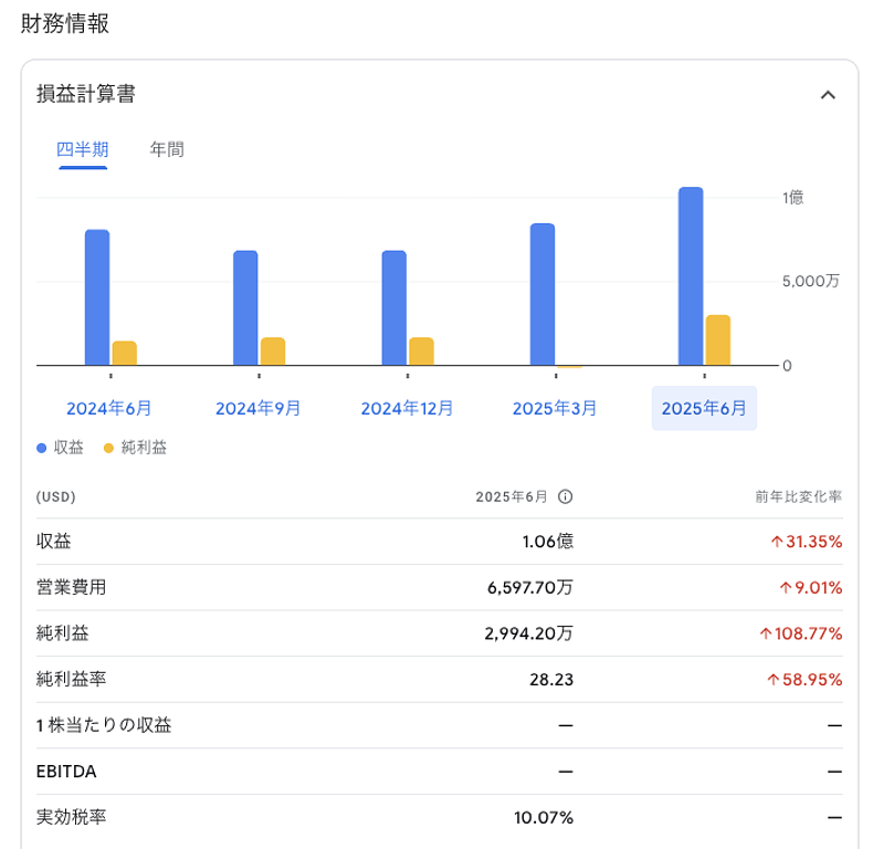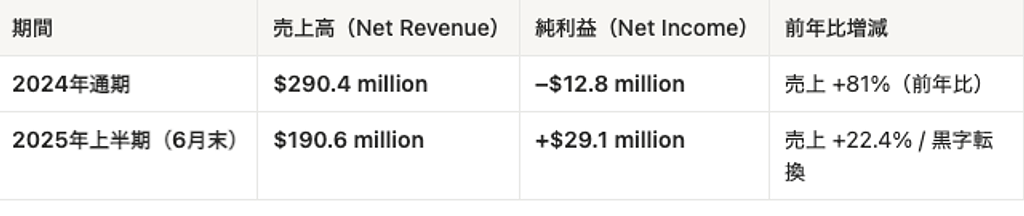 - 売上: 191M(2025H1)
