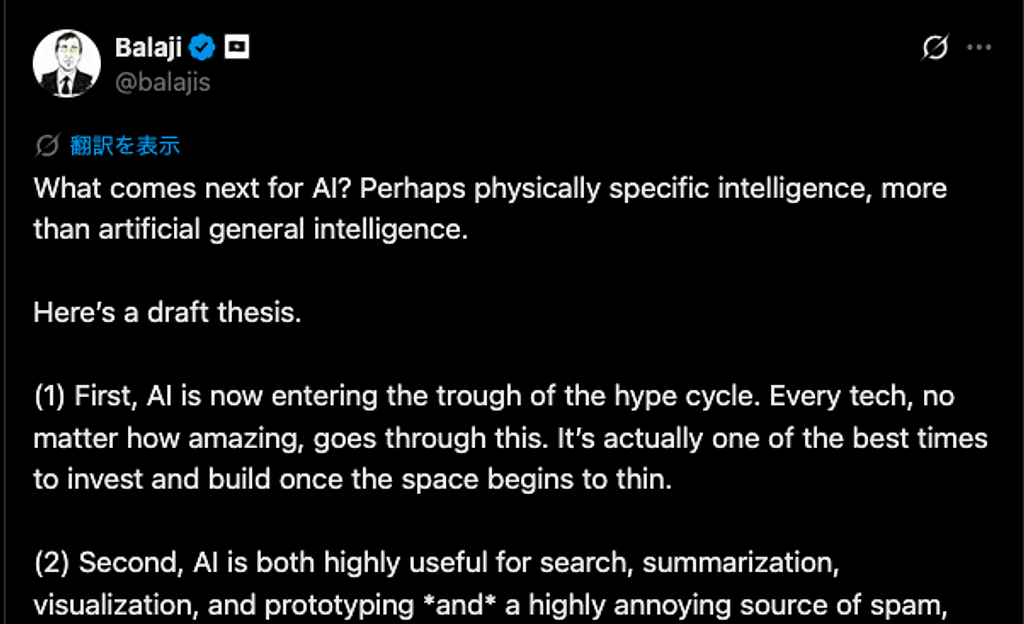 - ▍AIの未来:「人工一般知能(AGI)」から「物理特化知能」へ