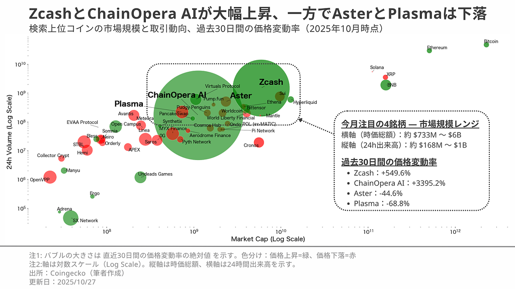 加えて、10月に特に話題を集めた Zcash をケーススタディとして取り上げ、主要指標や出来事を手掛かりに「なぜ注目されたのか」を検証します。