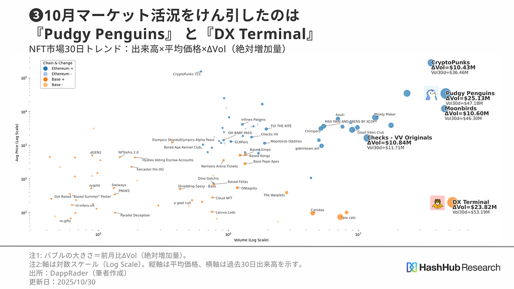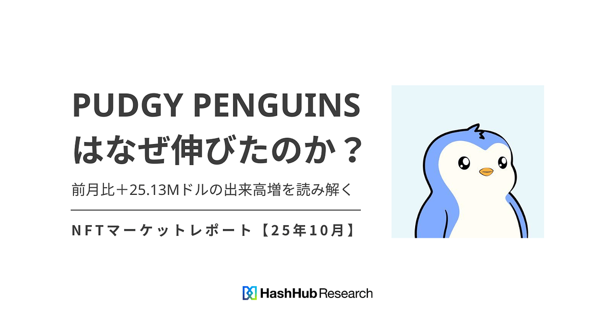 Pudgy Penguins はなぜ伸びたのか? 前月比+25.13Mドルの出来高増を読み解く:NFTマーケットレポート【25年10月】
