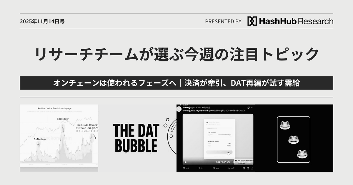 オンチェーンは使われるフェーズへ|決済が牽引、DAT再編が試す需給:リサーチチームが選ぶ今週の注目トピック 2025年11月14日号
