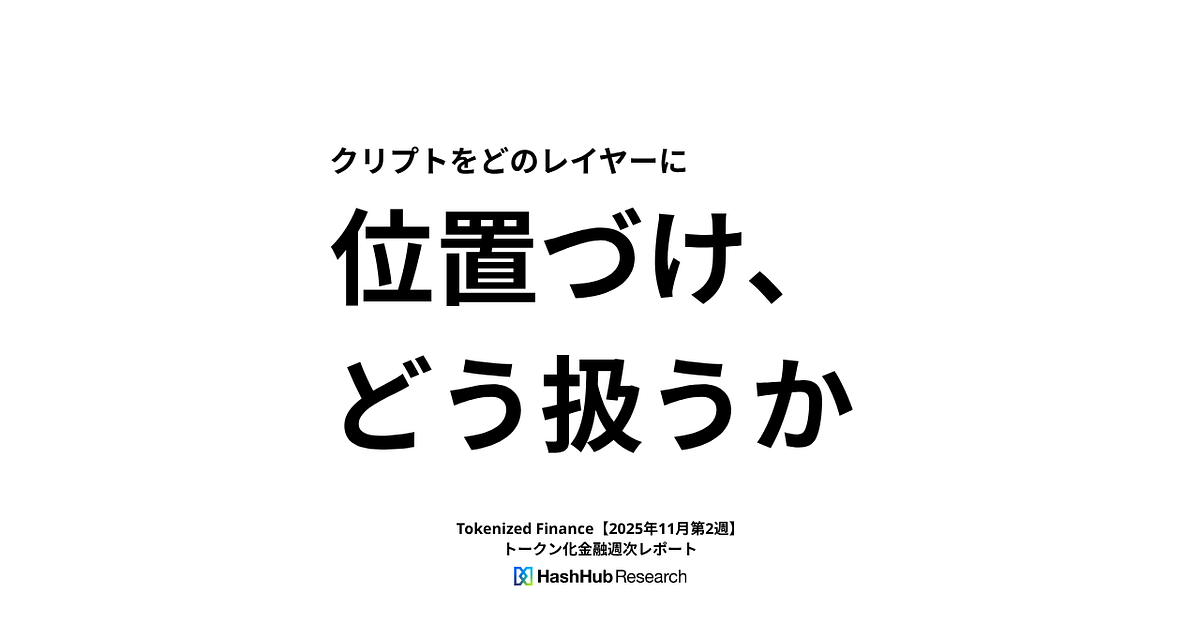 トークン化金融 週次レポート|2025年11月第2週|「クリプトをどのレイヤーに位置づけ、どう扱うか」