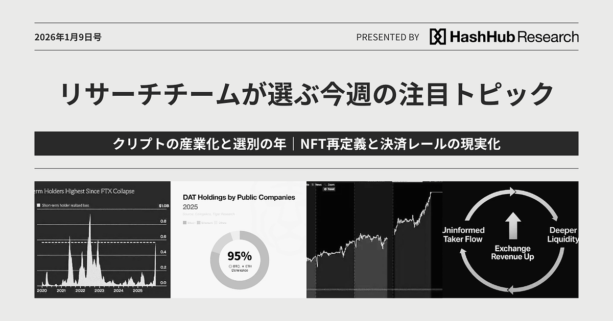 クリプトの産業化と選別の年|NFT再定義と決済レールの現実化:リサーチチームが選ぶ今週の注目トピック 2026年1月9日号