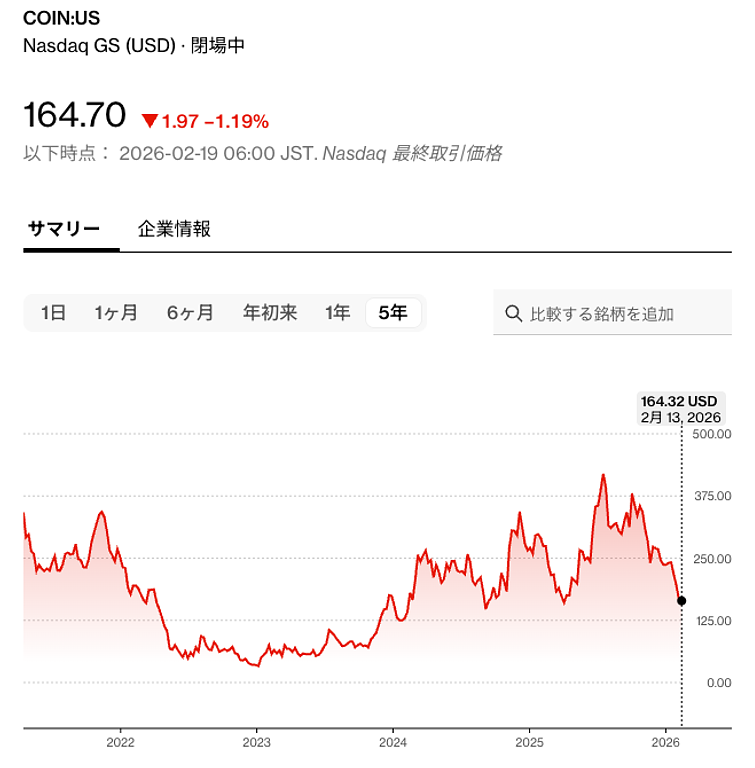Coinbase株価推移(出所:https://www.bloomberg.com/jp/quote/COIN:US)