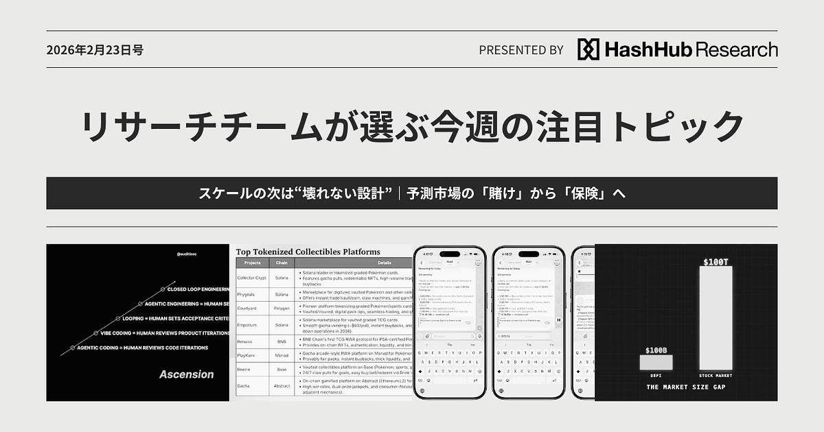 スケールの次は“壊れない設計”|予測市場の「賭け」から「保険」へ:リサーチチームが選ぶ今週の注目トピック 2026年2月23日号