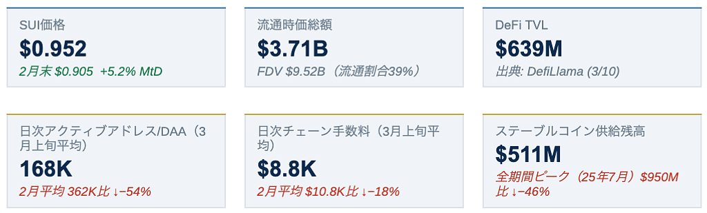 ② 機関系カタリストが出始めた:2025年末から2026年にかけて、SUI関連ETFが米国市場に上場し、機関投資家の投資チャネルが整備され始めました。また、SuiエコシステムではStripe傘下のBridgeがインフラを提供するネイティブステーブルコイン USDsui(Sui Dollar) が発表されています。これにより、機関投資家の参入チャネルとオンチェーン決済ユースケースの双方が整備され始めました。今後の焦点は、これらの動きが実際のネットワーク利用(TX・DAA)の増加にどこまで転換されるかです。
