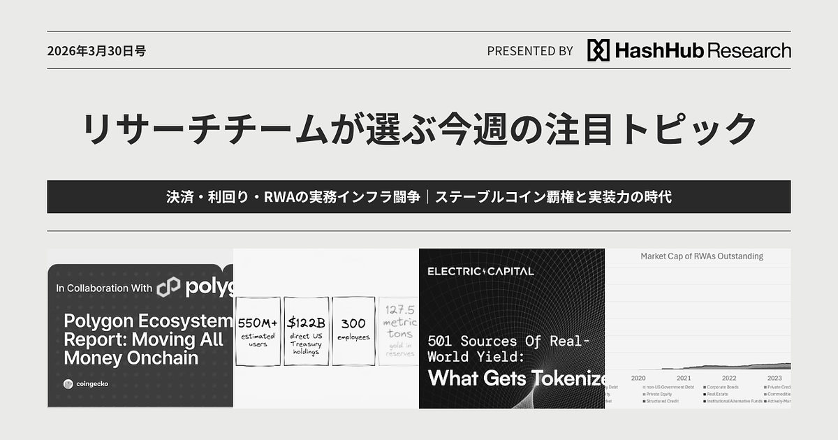 決済・利回り・RWAの実務インフラ闘争|ステーブルコイン覇権と実装力の時代:リサーチチームが選ぶ今週の注目トピック 2026年3月30日号