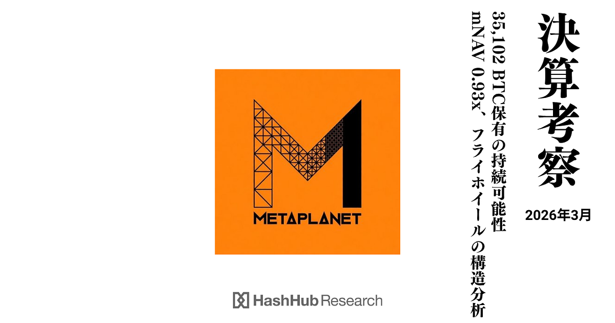 一方、2025年12月期決算の経常損失は約961億円。BTC評価損1,021億円が主因です。BTCトレジャリー戦略の構造的リスクについては、HashHub Researchでも繰り返し分析してきたテーマです。