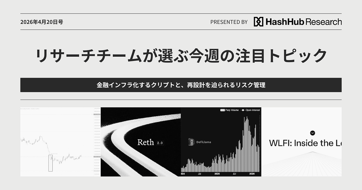 金融インフラ化するクリプトと、再設計を迫られるリスク管理:リサーチチームが選ぶ今週の注目トピック 2026年4月20日号