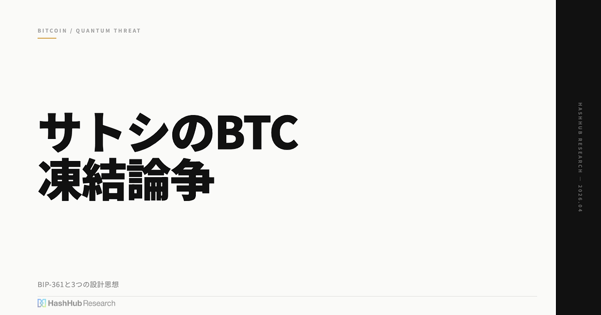 本稿はBIP-361の発表(2026年4月)を起点に、コミュニティが提案する対策の全貌と、今ビットコインを巡って交わされている議論の地平をビットコイン保有者・暗号資産投資家に向けて整理するものである。