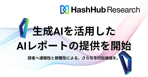 - HashHub Researchで配信されるレポートでは中立的な立場に基づき、トークンモデル・技術動向・投資観点・エコシステムの俯瞰などの観点でリサーチレポートの配信を日々行っています。いずれもニュートラルな考察、ときには批判的な見解をできることを意識しており、必要に応じて社内の他部門の連携も行いながらリサーチャー陣は利用者に気づきを届け次の価値創出に貢献することを目指しています。